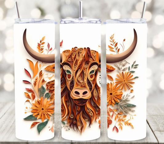 3D Highland Cow - Adhesive Vinyl Wrap -8 designs
