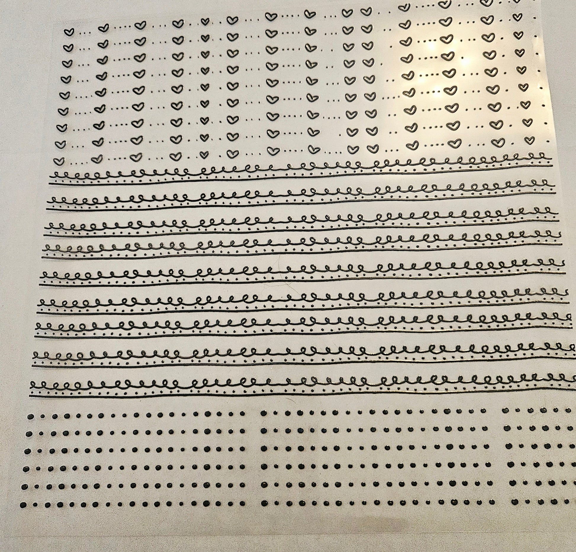 #17 Metallic UV DTF-Doodle Lines- hearts- available in Silver, Black Holo, Red Holo