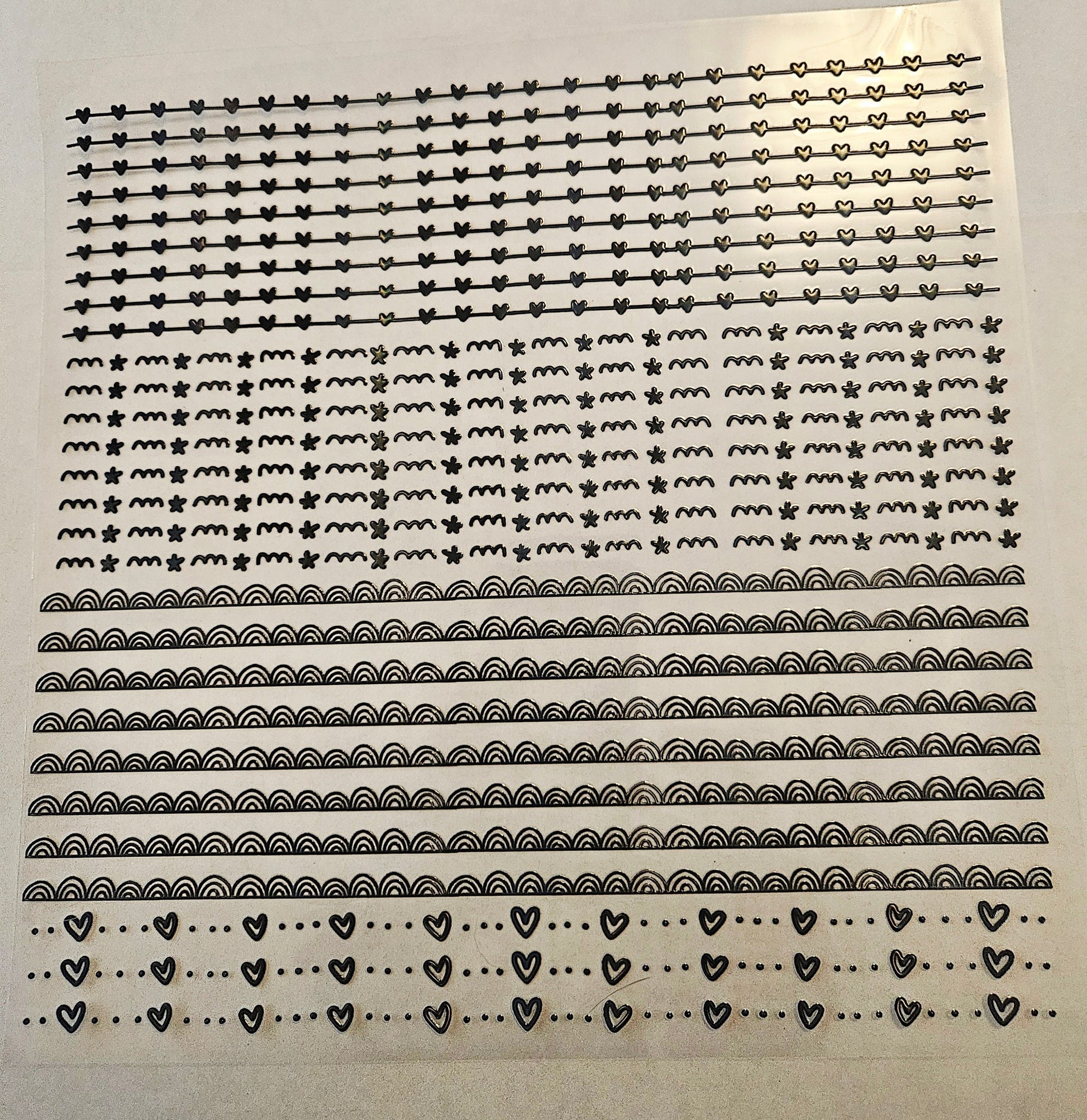#18 Metallic UV DTF-Doodle Lines- hearts- available in Gold, Black Holo