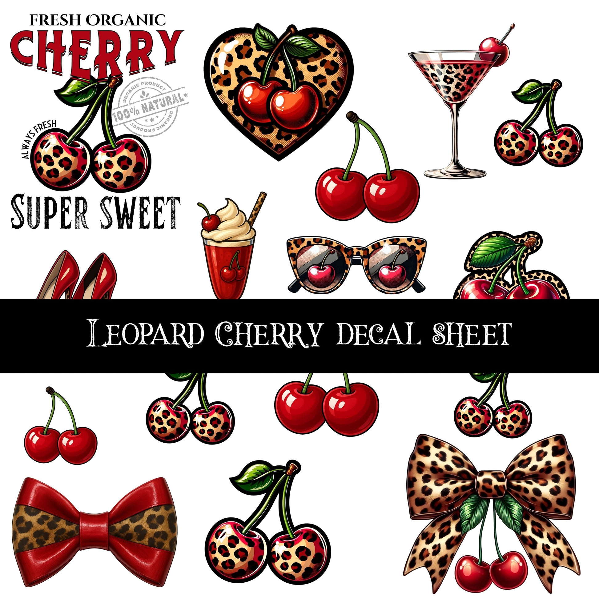 Leopard Cherry UV DTF Decal Sheet