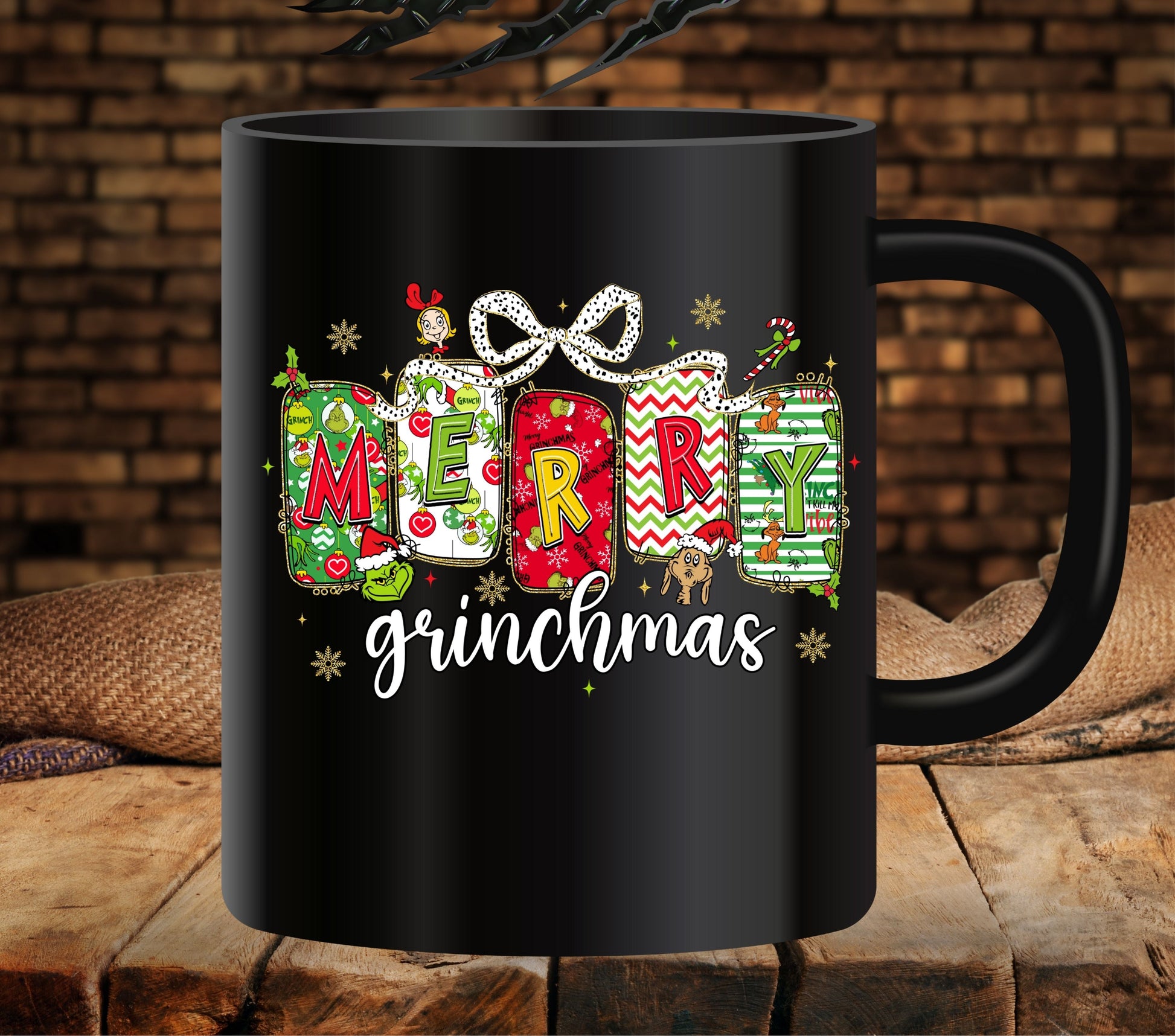 Merry Grinchmas Bow UV DTF Decals