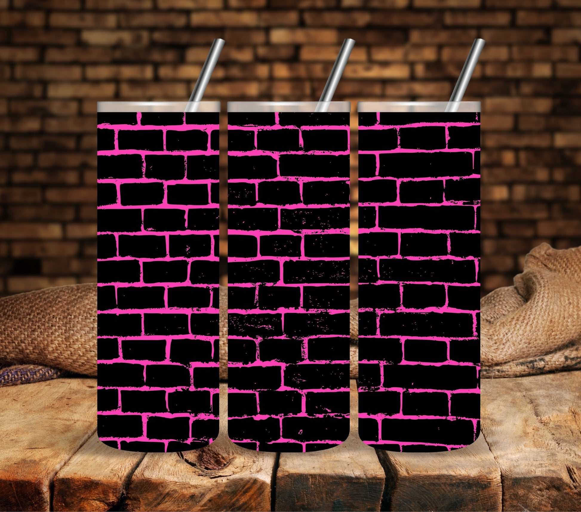 Pink Brick UV DTF tumbler wraps