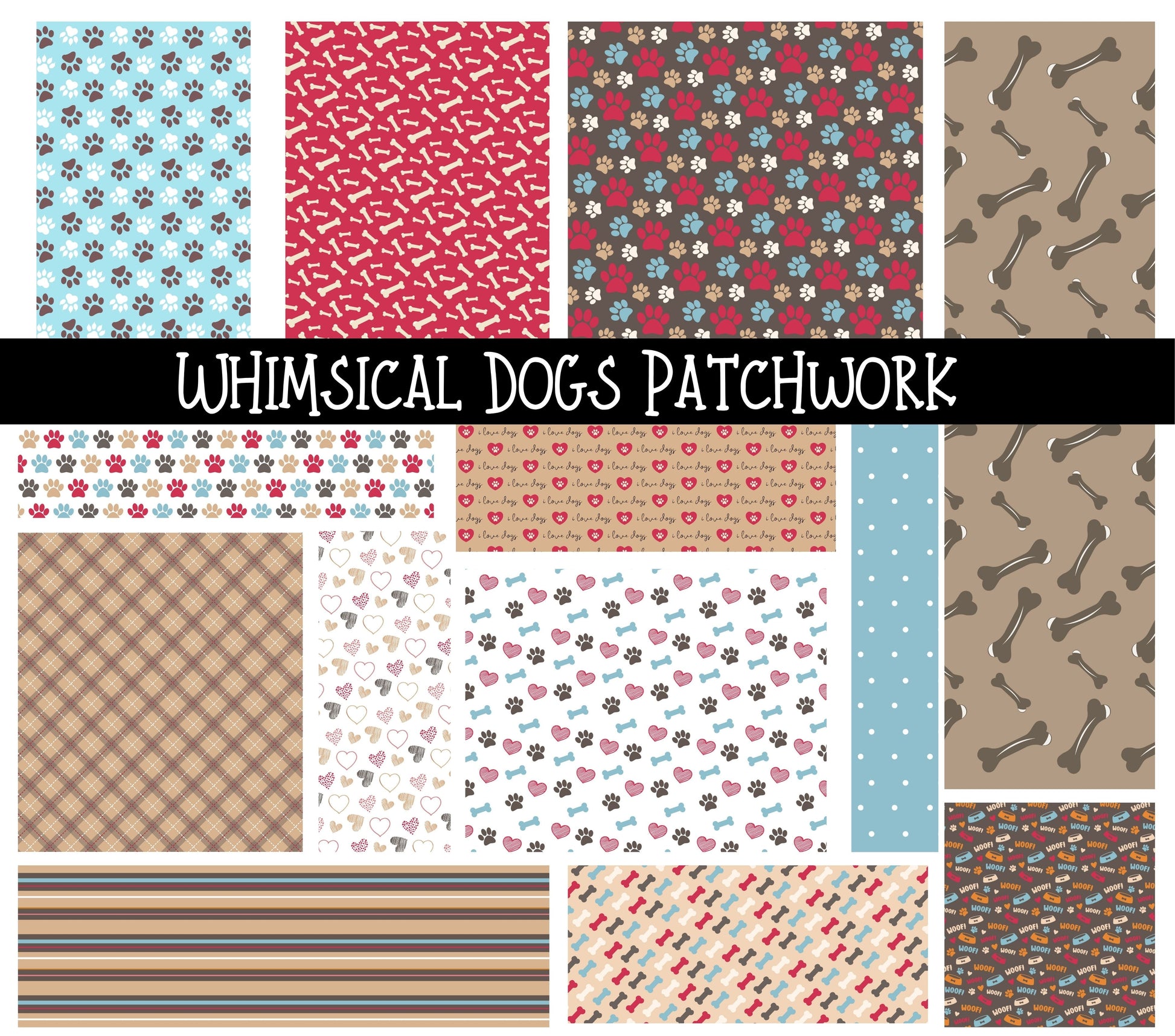 Whimsical Dogs Doodle Patchwork Set