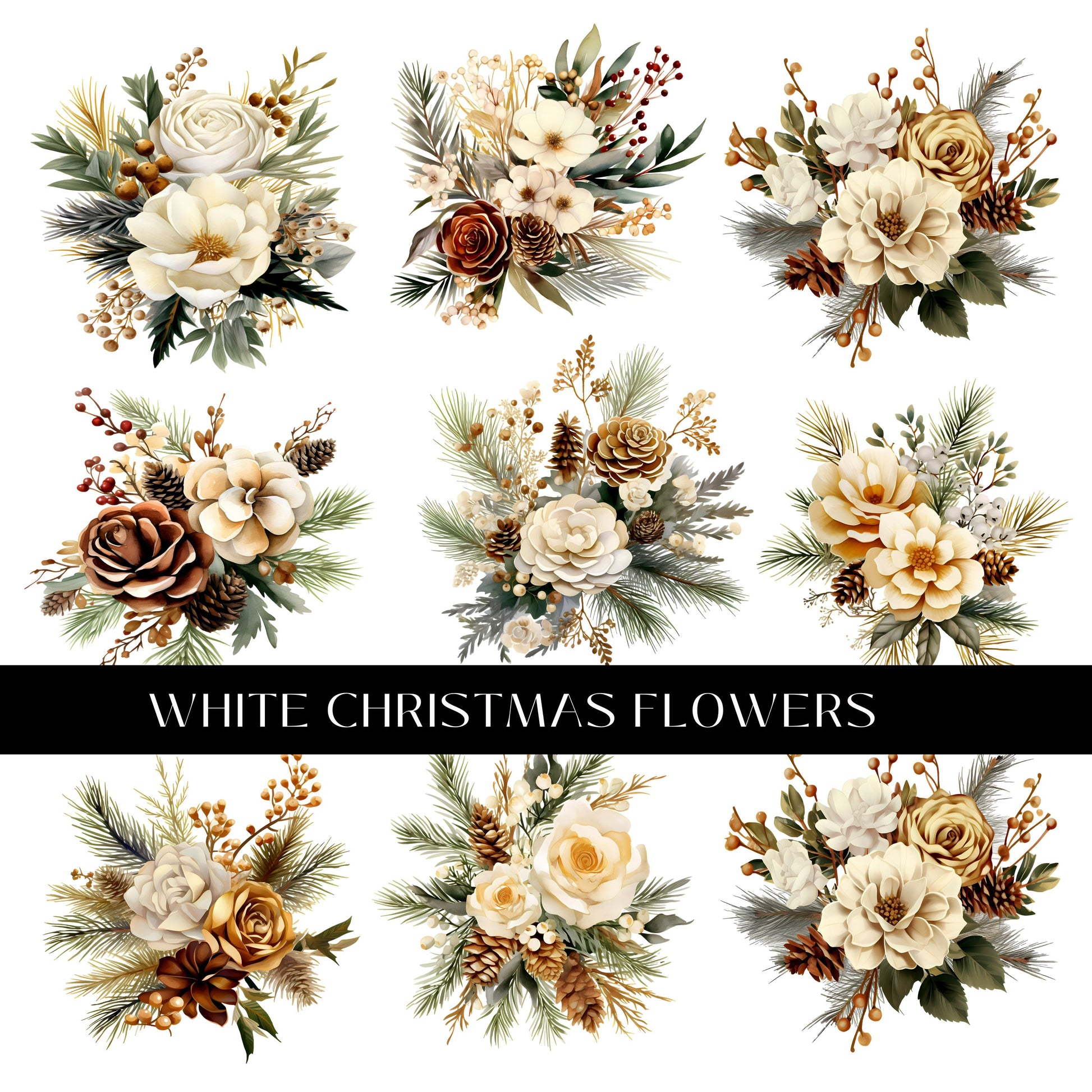 White Christmas Flowers UV DTF Decal Sheet